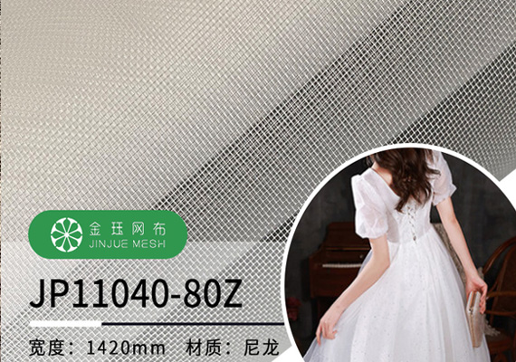 JP11001白色尼龍婚紗禮服類絲網(wǎng)布是我們的基本款,也是熱銷及應(yīng)用廣泛的一種尼龍網(wǎng)眼布, 該商品目數(shù)為10絲80目,顏色主要有本白色、膚色、金色、銀色等,顏色、目數(shù)、克重門(mén)幅都可以來(lái)圖來(lái)樣定制。主要用于制作婚紗禮服、西服等里襯高級(jí)面料,繡花高級(jí)底料。